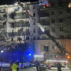 Zu einem dritten Balkonbrand gingen um 1.39 Uhr mehrere Meldungen ein, die bereits schilderten, dass im Peschlanger im siebten Geschoss ein Balkon brenne und auch die Flammen nach oben schlagen. Die Einsatzkräfte gingen parallel über das Treppenhaus und die Drehleiter vor. So konnten sie den Flammenüberschlag eingrenzen und den Brand löschen. Zahlreiche Bewohnerinnen und Bewohner wurden während der Löschmaßnahmen in Großraumrettungswägen betreut. Nach der Brandbekämpfung konnten alle wieder in Ihre Wohnungen, die Brandwohnung ist vorerst aber nicht bewohnbar.
